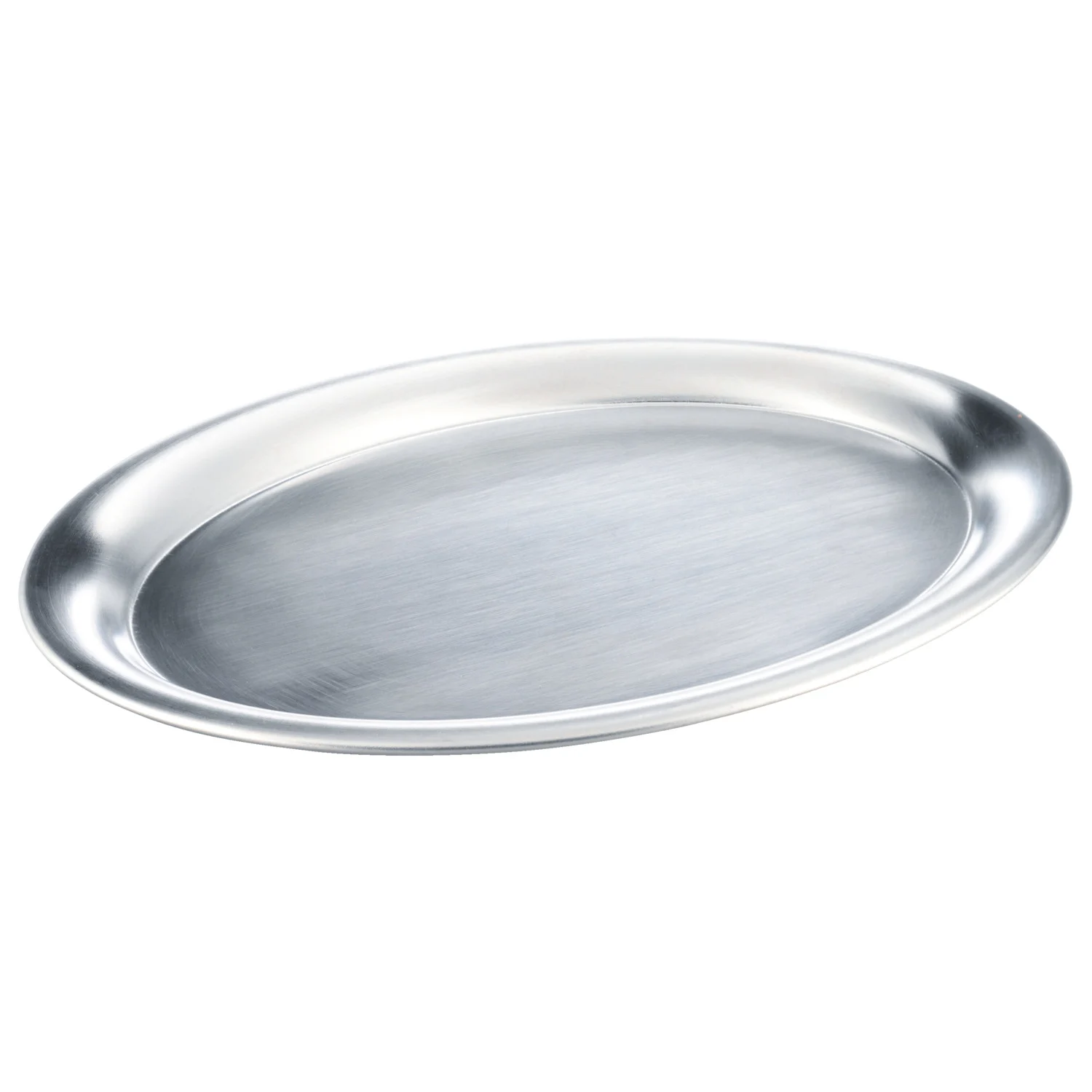 Stabiles ovales Tablett aus mattpoliertem 18/0 Chrom-Edelstahl, rostfrei.