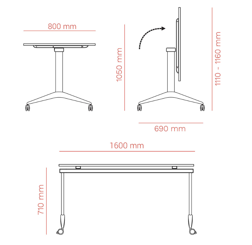 Sitzungstisch (Klappbar mit Räder) 160 x 80